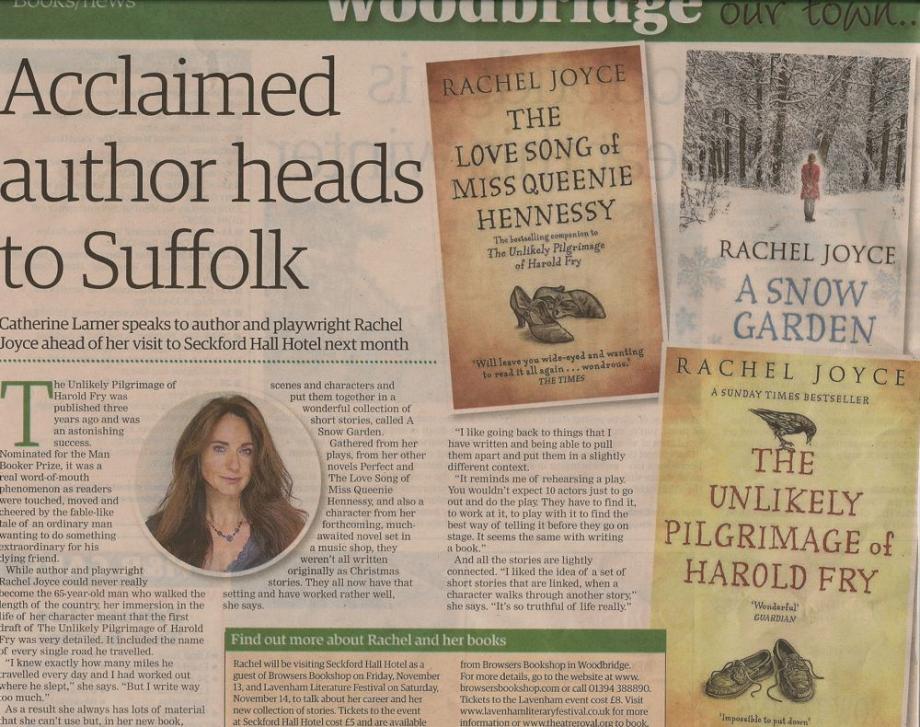 Acclaimed author heads for Suffolk
